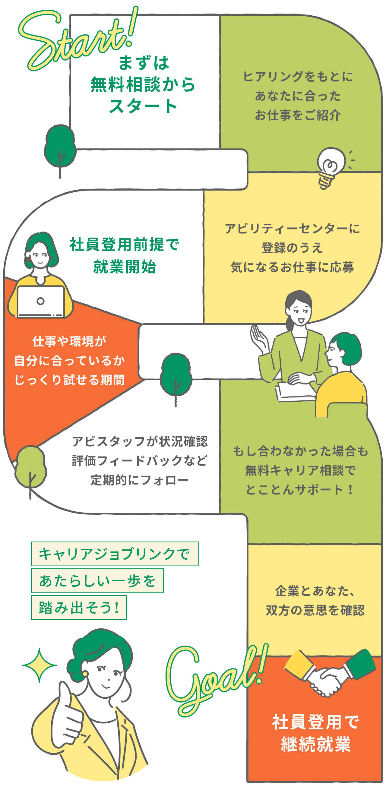 相談から社員登用までのロードマップ