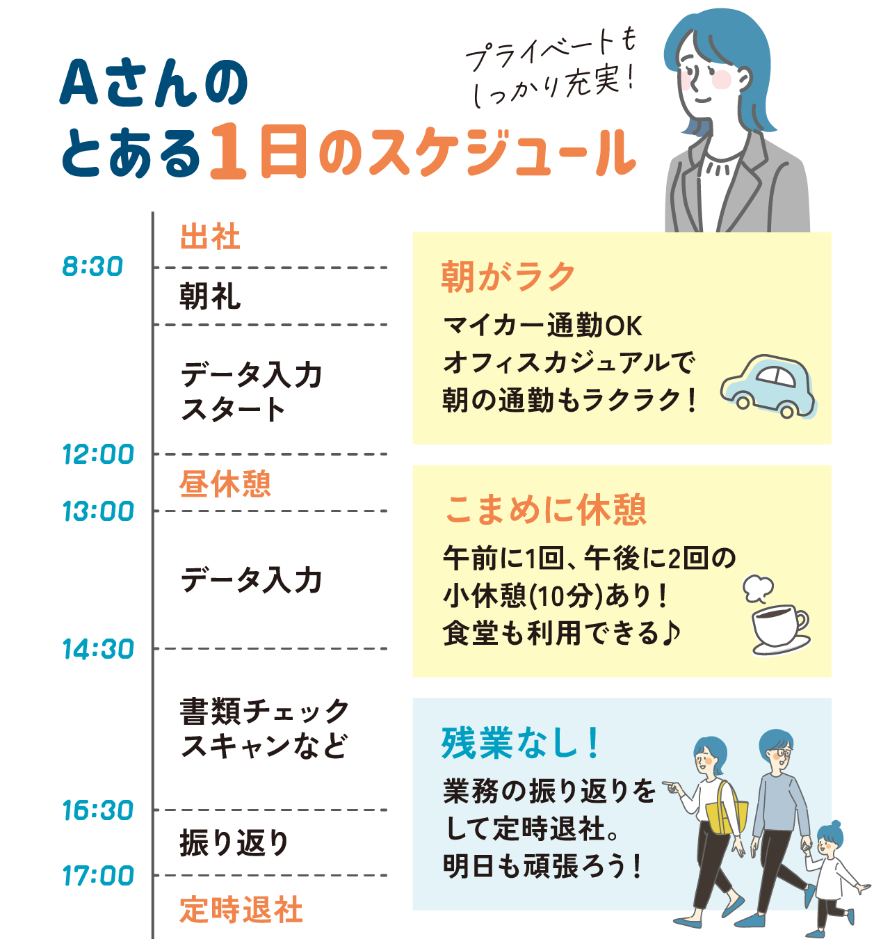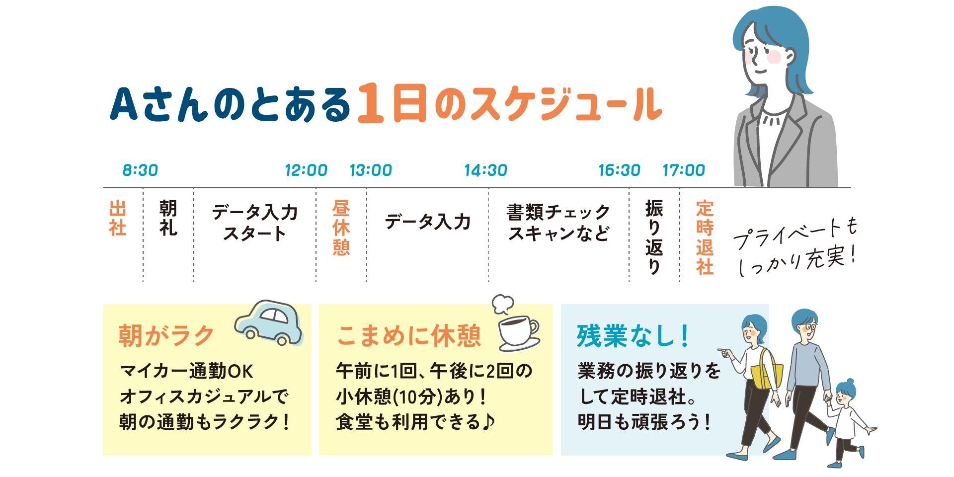 最長8:30~17:30、最短8:30~16:00で相談可能 - 休日: